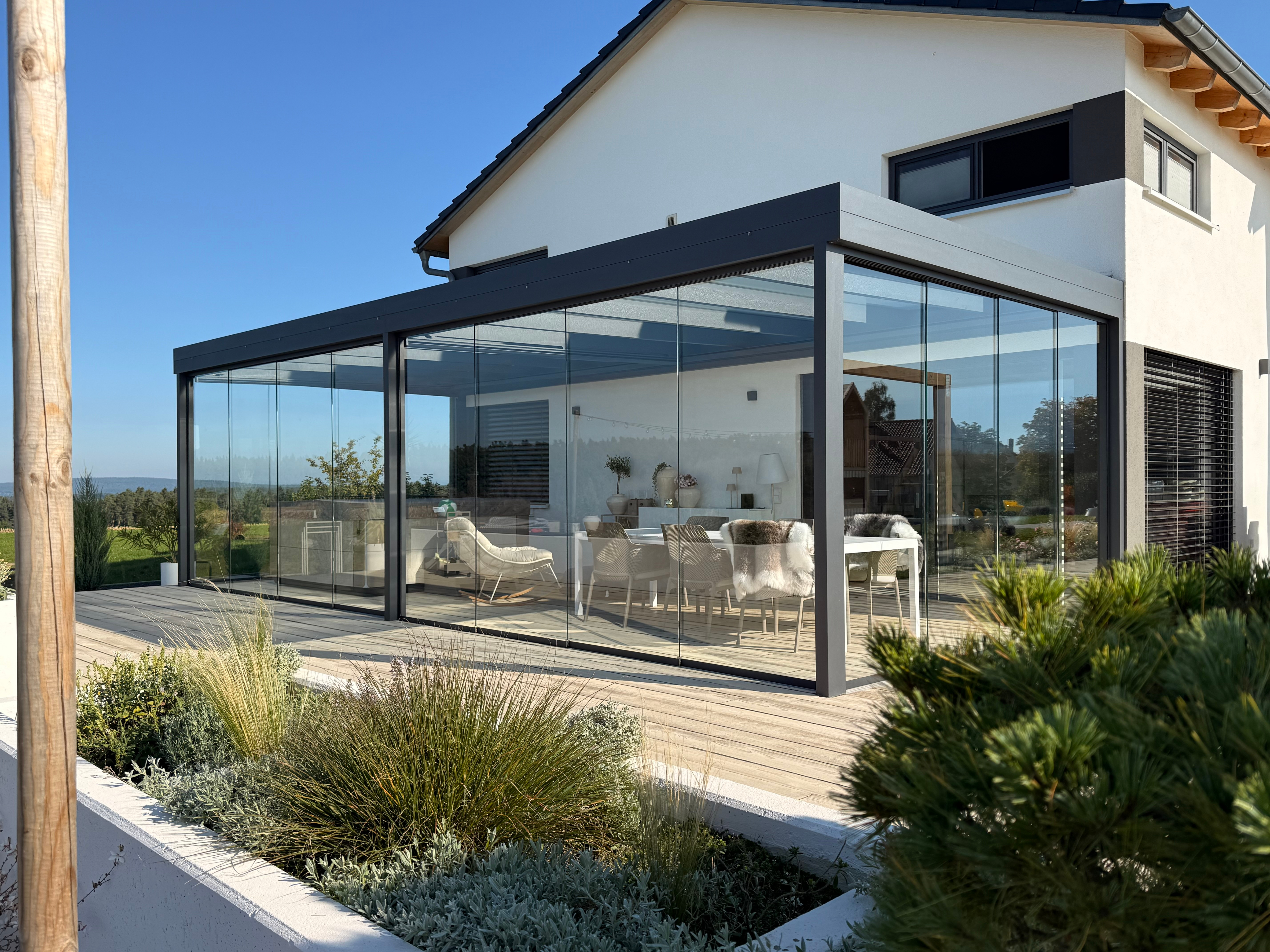 Terrassenüberdachungen, Sommer- und Wintergärten, Lamellendächer, Markisen und mehr – individuell geplant, hochwertig gefertigt und perfekt auf Ihr Zuhause abgestimmt.