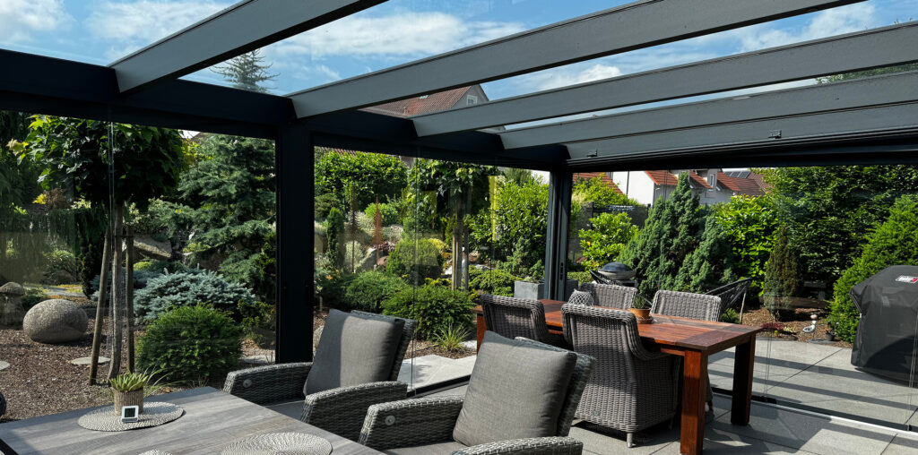 Unsere Glasräume erfüllen besondere Ansprüche. So heizt sich Ihr stark wärmegedämmter Sommer-/ Wintergarten im Sommer nicht auf und kühlt im Winter nicht ab. Zusätzlich ist jeder unserer Sommer-/ Wintergärten beheizbar. Wenn es wärmer wird, steuert intelligente Technologie die automatische Beschattung und Belüftung.